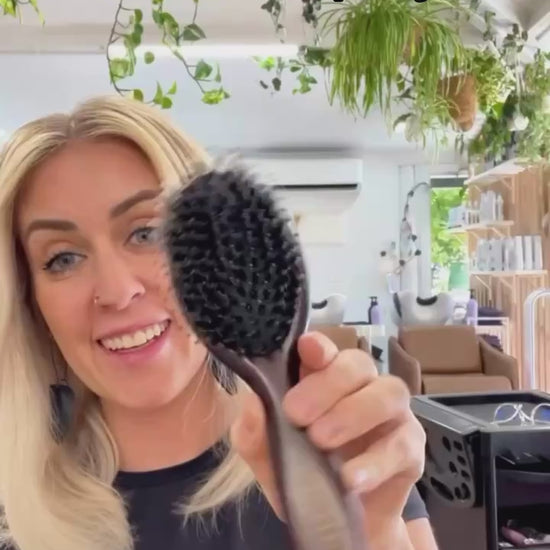 Crafted with a smooth timber handle and a dual bristle design, the Luxe Hair Brush by Elluca is your new everyday essential. Designed for gentle detangling and extension-safe care, this premium brush glides through hair without snagging, pulling, or causing split ends. It’s elegant, compact, and effective—perfect for brushing out curls, smoothing ponytails, or keeping in your handbag for on-the-go touch-ups.